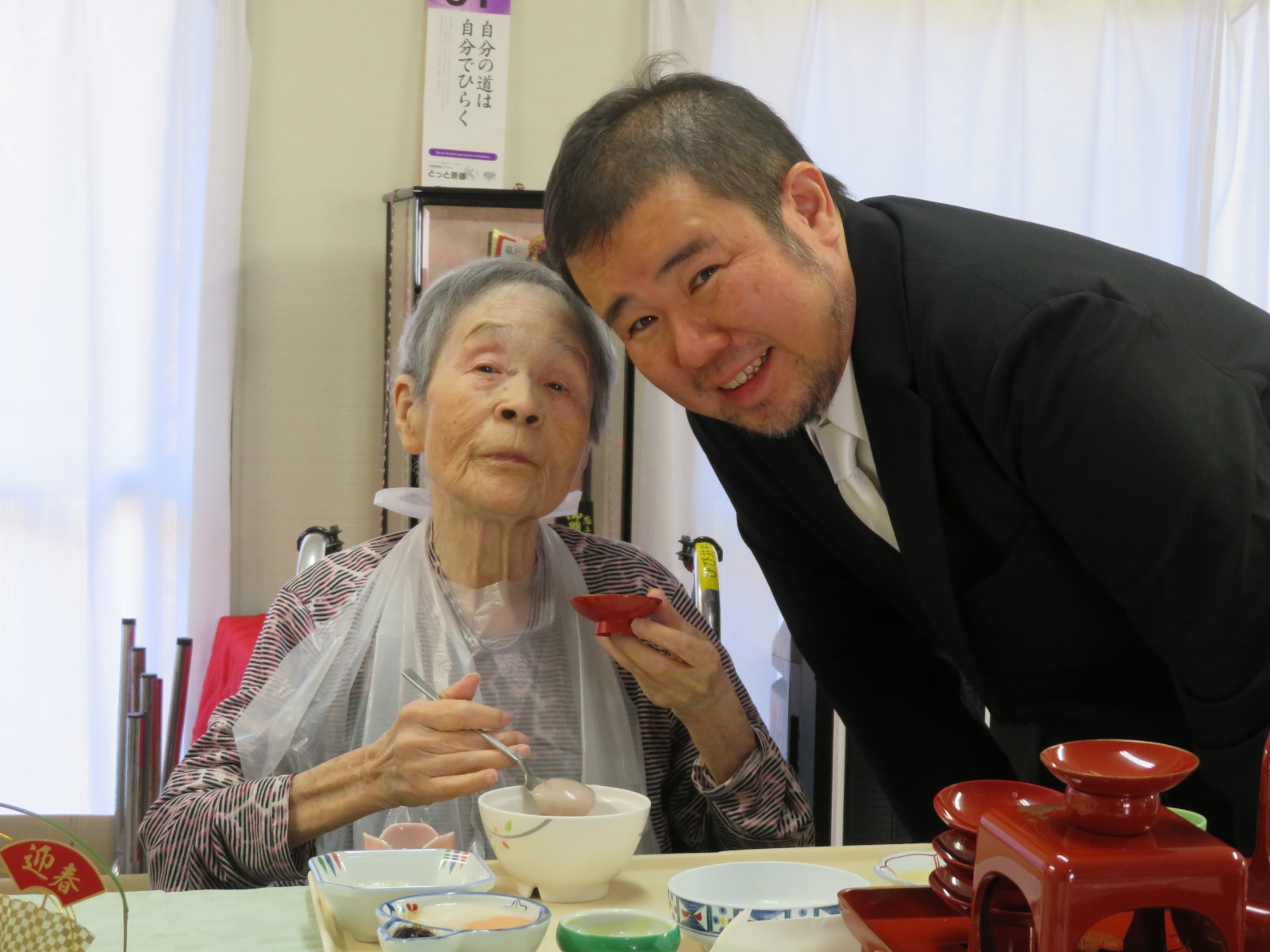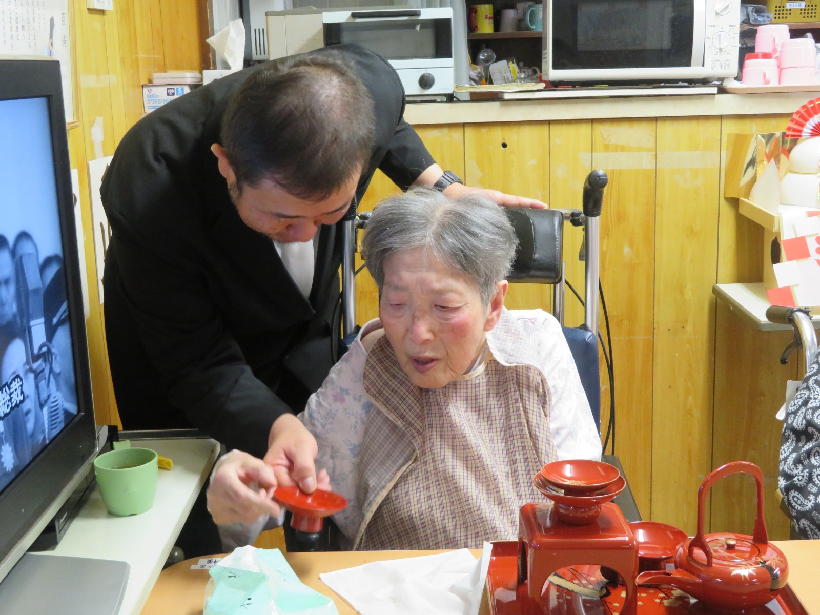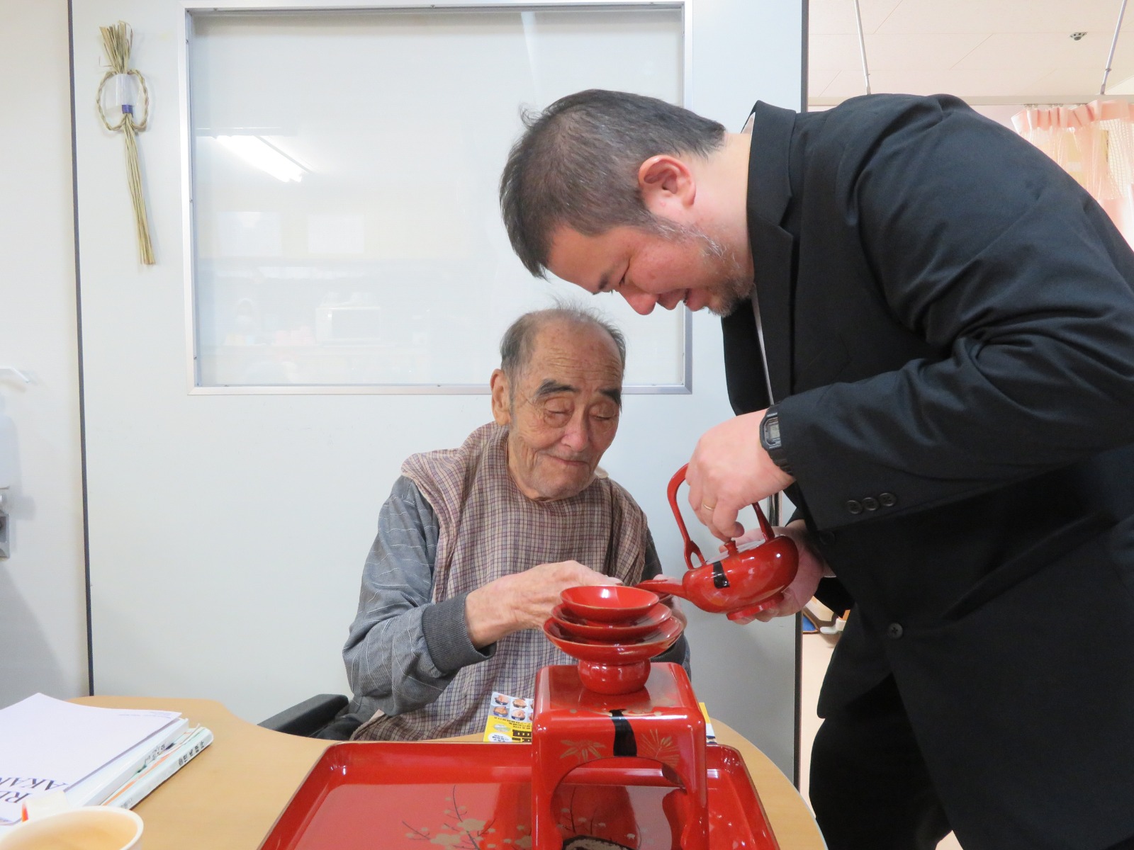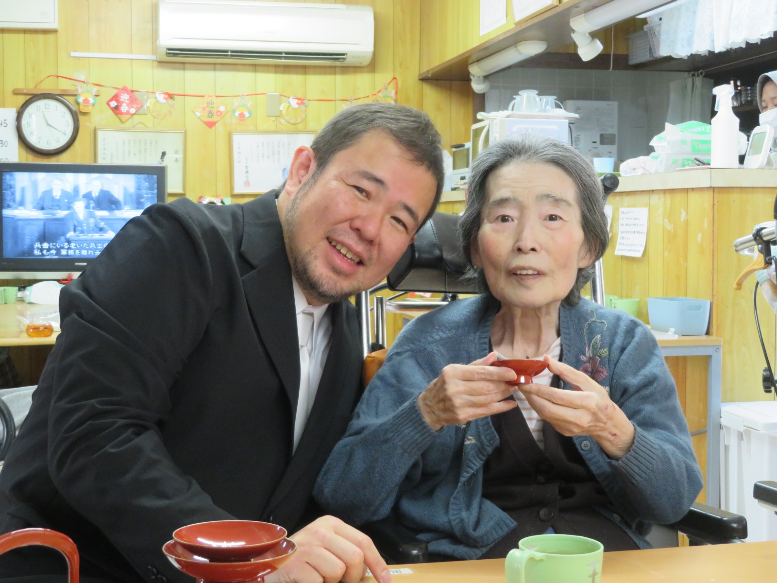 お屠蘇は無病息災や長寿を願ってお正月に飲むお酒と言われています。きしろ荘の皆様は飲まれましたので、きっとお元気で長生きされることと思います。